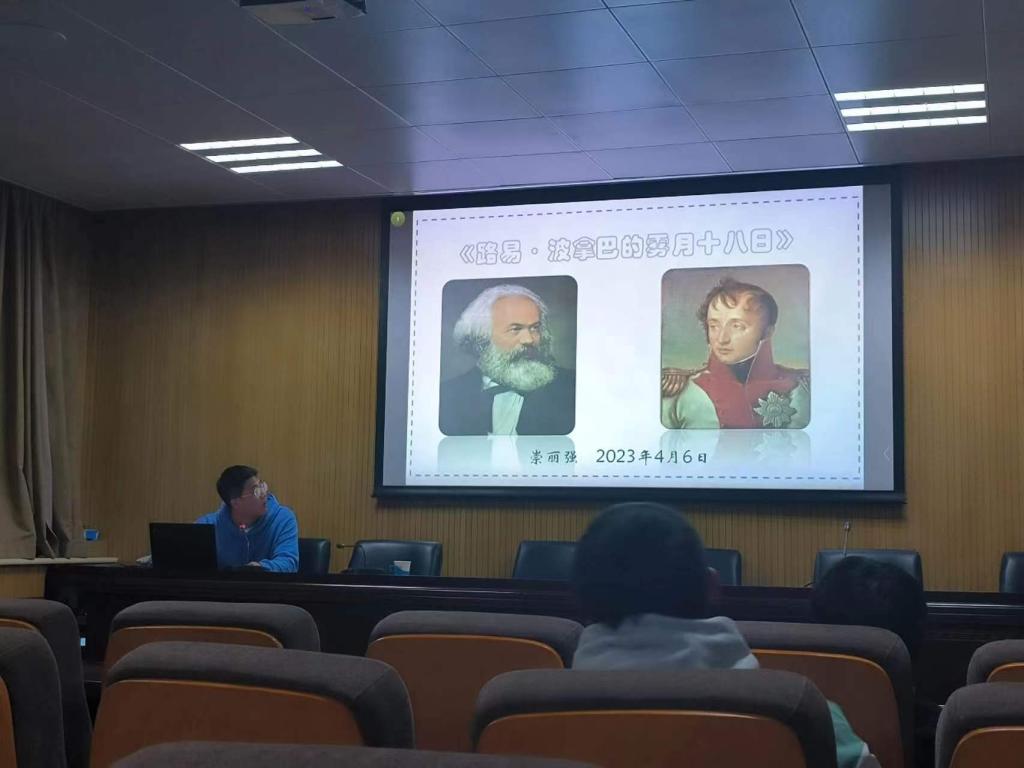 本次读书分享会由夏爽、李翔宇、张学敏、杨雪、吴智鹏、崇丽强六位同学分享。夏爽同学分享了《实践论》的写作背景,介绍了其产生的国内环境;李翔宇同学介绍了《实践论》的中心思想,包括实践是认识的基础、认识发展的辩证关系、绝对真理和相对真理的辩证统一关系、改造客观世界与主观世界、人类认识运动总规律五个方面;张学敏同学分享了《实践论》的当代价值,加深了同学们关于实践和认识关系的理解。随后,杨雪同学和吴智鹏同学和大家分享了《矛盾论》,作为一篇马克思主义中国化的哲学的经典著作,《矛盾论》继承和发展了马克思恩格斯对旧唯物主义的和唯心主义的批判,以及列宁关于辩证法的观点。矛盾论对于今天的中国特色社会主义建设有重要的指导意义。最后,崇丽强同学和大家分享了《路易·波拿巴的雾月十八日》,他围绕《路易·波拿巴的雾月十八日》的写作背景、中心思想、主要内容和时代价值四个方面对这部马列经典著作进行了精彩的解读,还从唯物史观作为一种科学的世界观方法论的层面展开了对文本时代价值的深入探讨。王大为老师对同学们的分享进行点评,肯定了同学们在准备工作过程中的努力,指出讲解过程中的问题,并引用生活实际和讲解中共党史帮助同学们理解理论知识,告诫同学们要理顺历史脉络。最后他对同学们提出了几点要求:一是要充分准备,深入讲解;二是要加强和老师之间的联系;三是要认真学习,为自己的就业和择业作出规划。
