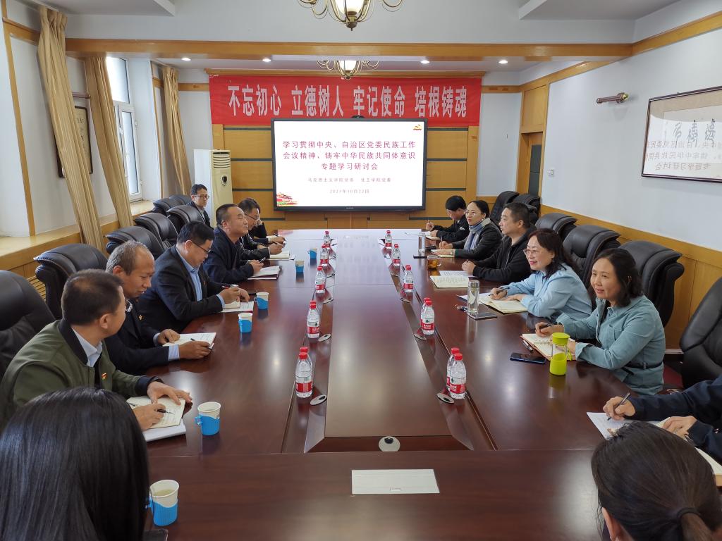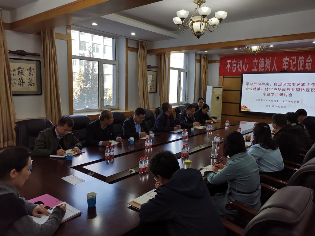 10月22日下午,yl23455永利集团党委、化工学院党委在yl23455永利集团三楼会议室召开学习贯彻中央和自治区党委民族工作会议精神专题学习研讨会。学校党史学习教育巡回指导组成员到会指导。会议由yl23455永利集团党委书记王文华主持。