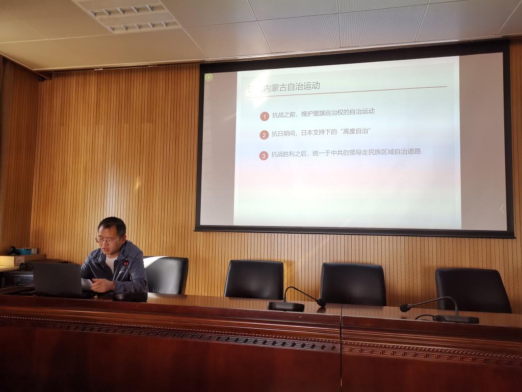 为进一步增强学术研究气氛,促进教师之间学术交流, 9月30日下午,我院2021年“博士开讲了”学术交流活动第一讲正式开讲。本次活动由刘文波老师为全院教师讲解《内蒙古为何走民族区域自治道路》,学院党委书记王文华老师主持本次活动。