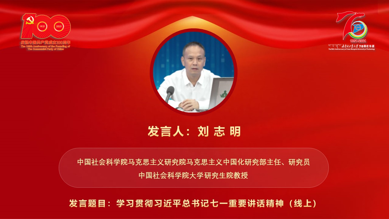 主旨报告环节中,中国社会科学院马克思主义研究院马克思主义中国化研究部主任刘志明教授围绕“学习贯彻习近平总书记七一重要讲话精神”这一主题进行了精彩讲解和阐释。