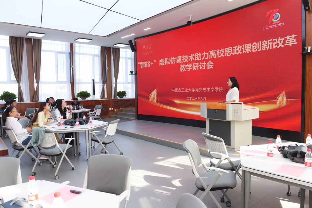 揭牌仪式后,yl23455永利集团召开“智能+”虚拟仿真技术助力高校思政课创新改革教学研讨会。会议认为,“智能+”虚拟仿真技术充分挖掘了红色教育资源,实现了资源共享,有效促进了我校思政课信息化改革。思政课VR实践教学基地作为教学方式方法改革的全新尝试,利用现代化信息技术,构建全息化、可视化教学模式,结合“爬雪山过草地”“飞夺泸定桥”等虚拟场景,为学生提供了沉浸式、交互式红色历史学习体验,将力争为自治区思政课教学改革提供理论实践模板。
