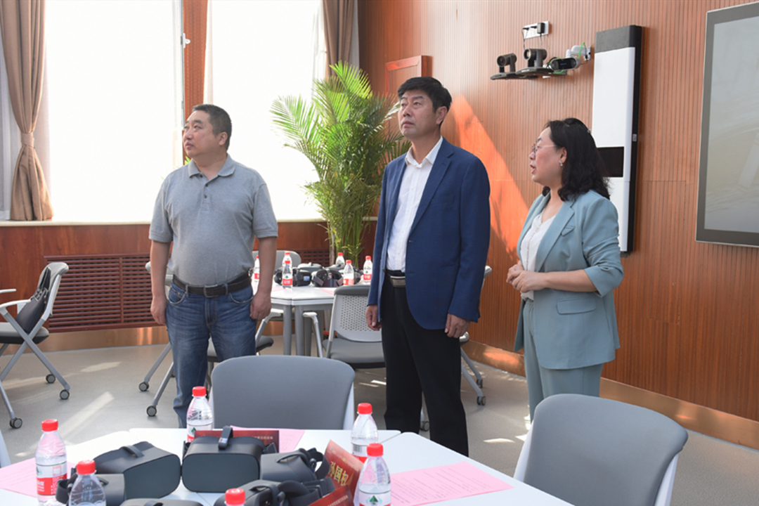 校党委书记孙国权,校党委委员、宣传部部长王武为基地揭牌。全体与会人员参观了智慧实践教学基地,体验了VR实践教学设备。
