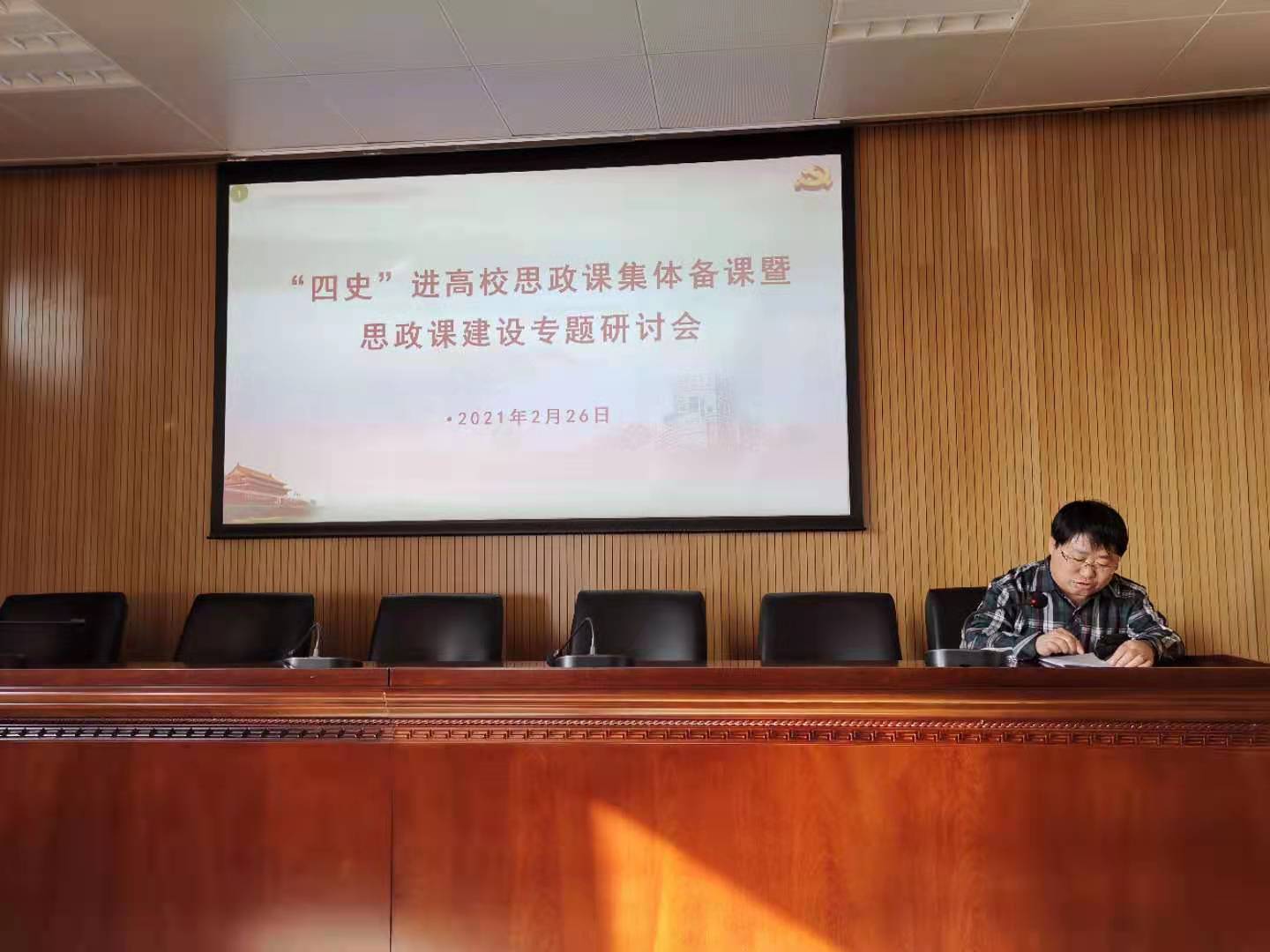 为深入学习习近平总书记在党史学习教育动员大会重要讲话精神,按照“学史明理、学史增信、学史崇德、学史力行”的总体要求,遵循“学党史、悟思想、办实事、开新局”的指针,从中国共产党百年丰厚历史进程中汲取马克思主义理论科学力量、马克思主义中国化奋进实践力量和中国共产党精神谱系与价值追求,以昂扬姿态奋力开启全面建设社会主义现代化国家新征程,以优异成绩迎接建党一百周年,立足高校思政课作为落实立德树人根本任务的时代使命,深入推进我校思政课的质量建设与创新改革,2月26日下午,yl23455永利集团举办“四史”进高校思政课集体备课暨思政课建设专题研讨会。研讨会上,各教研室主任分别结合“四史”融入课程建设、推动思政课建设创新改革进行了专题发言。yl23455永利集团全体教师参加会议。