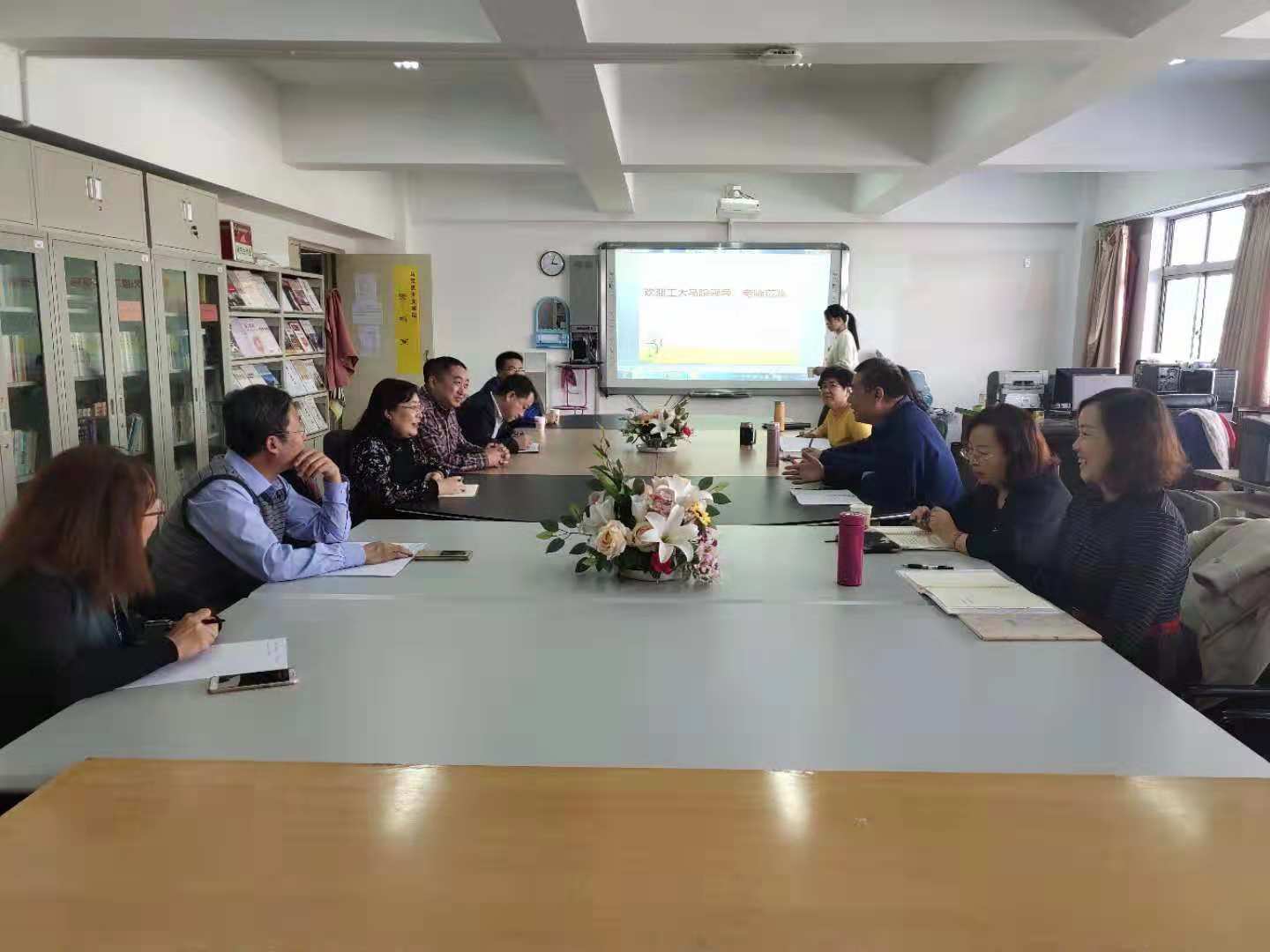 2018年11月7日下午,我院党总支书记王文华、院长马军一行前往包头师范学院yl23455永利集团,就加强思政课程建设进行专题调研。包头师范学院yl23455永利集团党总支书记、院长姜明,副院长刘翠芬和高德胜及各教研室主任参加座谈会。我院思想政治教育学科带头人李慧教授,马克思主义基本原理学科带头人布和朝鲁教授及各教研室主任、教学科研服务中心主任、党政办公室主任等随同调研。