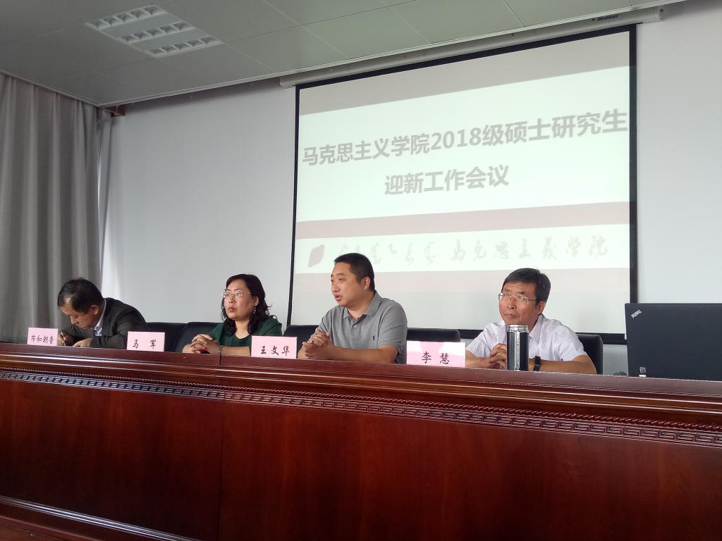 迎新工作会上,马军院长介绍了新生、导师的情况以及学院的基本情况,王文华书记介绍了学院、学校规章制度,学科点负责人布和朝鲁、李慧老师分别介绍了本学科专业建设、培养要求、就业方向等情况。会上,要求全体2018级新生严格遵守学校各项规章制度,按照培养计划认真完成各项教学、科研、实践任务,系统掌握本学科的专业知识,扎实写好学位论文,不断提高创新创业能力和水平;要求全体导师按照学校《硕士研究生指导教师管理办法》和学院实施细则的要求,认真履行导师各项岗位职责,充分发挥导师在研究生培养过程中的主导作用,保证研究生培养质量。