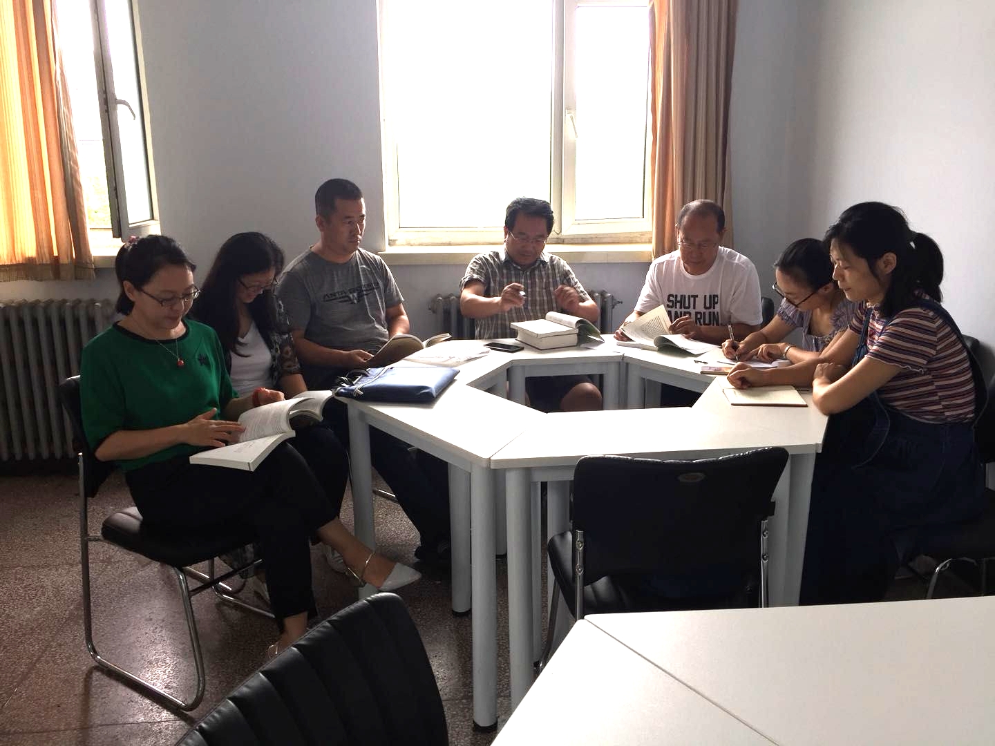 2018年7月17日上午,马克思主义基本原理教研室进行集体备课,就2018版新教材内容开展了集体交流与学习。备课教师就教材重要知识点如何深入浅出地讲解、用生动趣味性案例引导学生更好地理解新教材内容展开了激烈的讨论,对十九大报告与习近平在马克思诞辰200周年上的讲话内容进教材、进课堂的问题进行了深入讨论与细致研究。 此次集体备课开展顺利,备课教师们相互学习、共同进步,为下一步更好地开展教学工作打下了坚实基础。