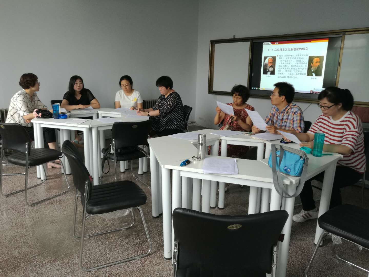 为贯彻落实《教育部关于印发<新时代高校思想政治理论课教学工作基本要求>的通知》要求和精神,切实推进习近平新时代中国特色社会主义思想和党的十九大精神进课堂、进学生头脑,7月17日上午,中国近现代史与民族理论教研室在学院410室开展集体备课活动。