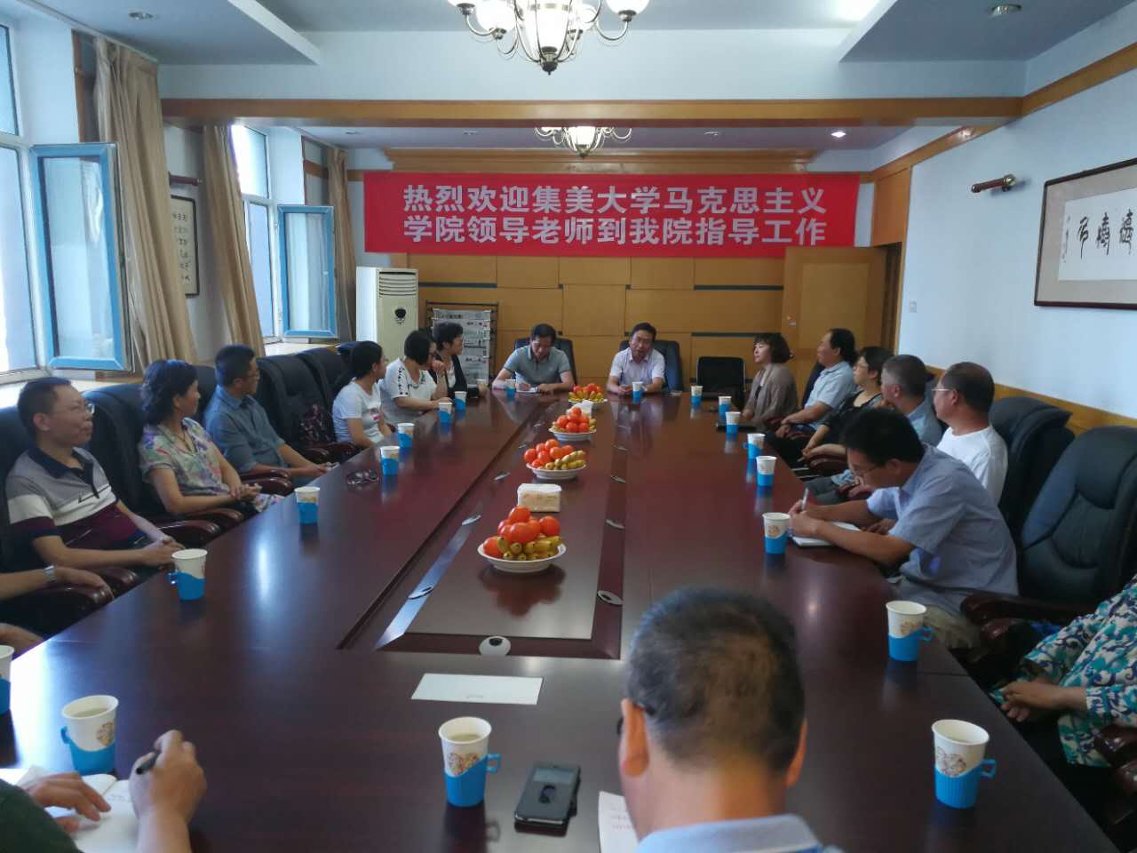 8月24日下午,集美大学yl23455永利集团院长肖仕平院长一行17人来访我院,调研思想政治理论课建设情况。学院党总支书记李慧、副院长包红梅、各教研室主任及部分教师参加了交流座谈。李慧主持座谈会。