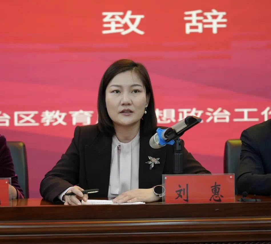 自治区教育厅思政处处长刘惠在讲话中强调,在当前世界百年未有之大变局加速演进、国际形势复杂多变、我国面临诸多机遇与挑战的背景下,推动形势与政策课程建设迈上新台阶,对于落实立德树人根本任务、培养新时代青年具有重要意义。她对全区“形势与政策”课程建设提出以下建议:一是要提高政治站位,明确课程建设的历史方位。要以更高站位认识"形势与政策"课的历史方位,引导青年学生把握时代脉搏、坚定理想信念。二是以学生成长为中心,创新教学模式。要把握青年大学生的学情特点,构建"理论+实践+互动"的立体化教学体系,满足学生多样化的学习需求。三是以协同创新为抓手,凝聚育人合力。构建“大形势与政策课”的工作格局,建立党委统一领导、部门协同联动的工作机制。四是以质量提升为目标,强化内涵建设。不断加强课程建设与教师队伍建设,推动形势与政策课提质增效。