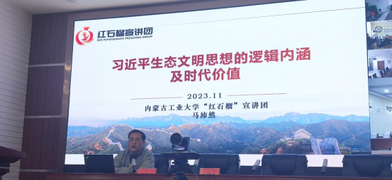 11月1日,永利y23455“红石榴”宣讲团走进呼和浩特市气象局开展理论宣讲与调研活动。宣讲团的成员围绕“两个结合,马克思主义中国化时代化新境界”和“习近平生态文明思想及当代价值”两大主题,通过生动的案例和真实的数据,深入浅出地讲解了内蒙古自治区经济社会与生态环境发展的重要意义与时代价值,将习近平总书记交给内蒙古的“五大任务”以理论宣讲的方式深入到自治区各项工作中。
