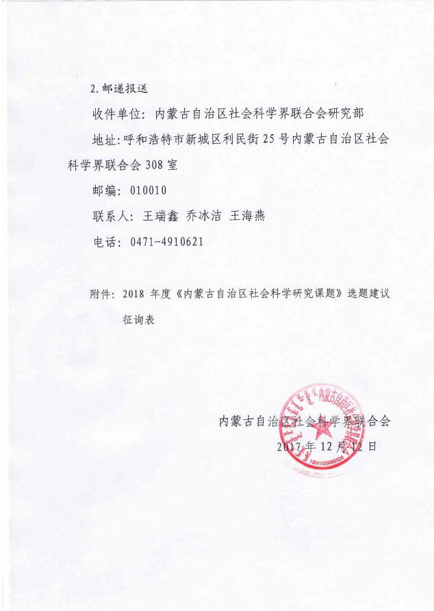 上一条:关于做好2018年度国家社会科学基金项目申报工作的通知 下一条:转发内蒙古自治区教育厅关于做好2017年度高校科研项目结题和清理工作的通知