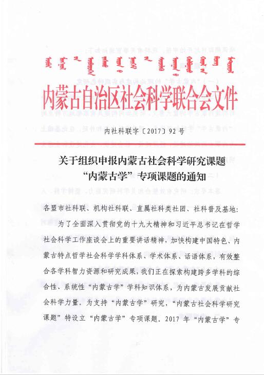 上一条:转发关于做好2017年度科研业绩申报审核工作的通知 下一条:转发关于申报“内蒙古社会科学研究课题” 落实党的十九大精神重点项目的通知