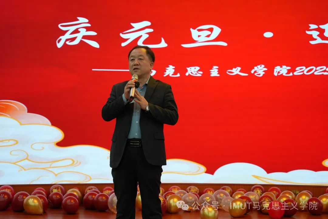 布和朝鲁致新年贺词表示,在过去的一年里,面对思政理论课教育教学改革机遇和挑战,全体教师直面困境,负重前行,初心不改,砥砺奋进,持续深化思政理论课教育教学改革,不断探索课堂教学效果提升之道,全面加强思政课建设,不断提升思政引领力,思政理论课教风学风改进成效显著,持续向好。学院发展进步的点点滴滴,都离不开每一位老师的辛勤耕耘和默默奉献。值此岁聿云暮,一元复始之际,向全体师生表示衷心的感谢并致以诚挚的新年祝福。