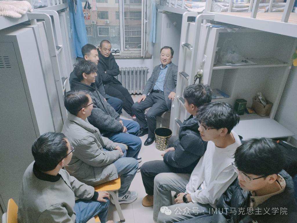 走访中,学院领导、老师们深入学生公寓与学生们亲切交谈,老师们认真倾听学生的心声,详细了解他们的学习进度、科研进展、就业情况、生活状况以及遇到的困难,针对不同年级有针对性的解答学生提出的问题。交谈中,老师们围绕理想信念、学习方法、个人发展和职业选择等方面与同学们展开交流,并勉励大家要在学业上追求卓越,积极参与科研活动,提前进行职业规划。最后向同学们进行安全风险提示,提醒同学们增强风险识别意识,风险防范能力。