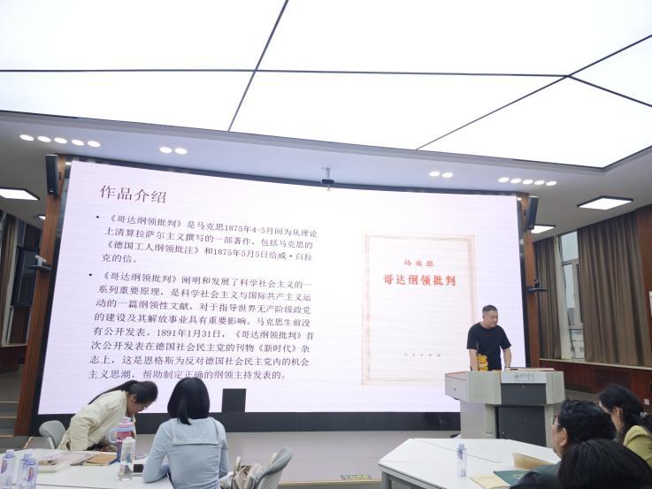 陈智源同学深入讲解《哥达纲领批判》这部著作,不仅揭露了拉萨尔主义在政治、经济与哲学上的根本错误,同时也对无产阶级实现社会主义的路径、未来新社会的发展阶段、国家制度等都作了系统阐释,捍卫和发展了科学社会主义理论,为无产阶级革命和未来社会建设提供了理论指引。他的讲解深入浅出,使同学们对《哥达纲领批判》这部经典著作有了更加全面和深入的理解。