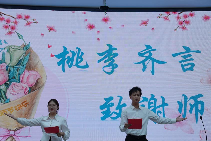座谈会上,学生代表张祎、王惠悦还表演了诗朗诵《桃李齐言 致谢师恩》