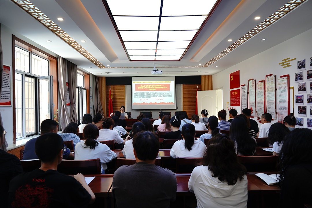 永利y23455“红石榴”宣讲团成员、yl23455永利集团杜索菲同学围绕“两个结合”开辟马克思主义中国化时代化新境界,分别讲述了“两个结合”是马克思主义中国化百年历程的经验总结,“两个结合”是中国优秀传统文化的接续发展,以及在践行“两个结合”的重要举措上充实马克思主义中国化时代化新篇章的时代内容三个部分的内容。并且立足于内蒙古自治区的实际发展,讲述了习近平总书记交给内蒙古的“五大任务”以及全方位建立“模范自治区”的相关内容,深入学习习近平总书记考察内蒙古时的重要指示重要讲话精神内容。
