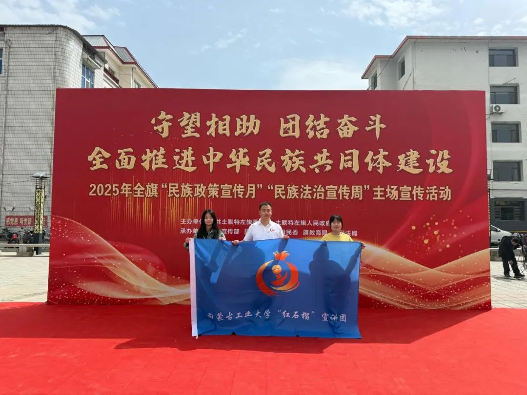 2025年5月8日,永利y23455“红石榴”宣讲团深入土默特左旗参加由中共土默特左旗委员会、土默特左旗人民政府主办,旗委宣传部、旗委统战部、旗民委、旗教育局和旗司法局承办的2025年全旗“民族政策宣传月”“民族法治宣传周”主场宣传活动。宣讲团成员陈智源、高雅婷、任艳参加宣讲志愿活动。