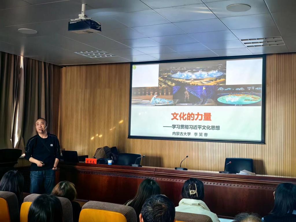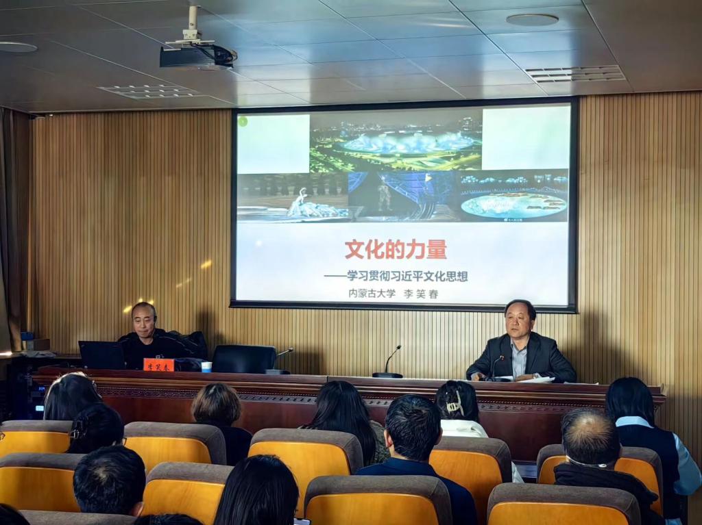 为深入学习贯彻习近平总书记对宣传思想文化工作的重要指示精神和全国宣传思想文化工作会议精神,11月14日下午,yl23455永利集团在学院五楼会议室举办了题为“文化的力量-学习贯彻习近平文化思想”的专题讲座。讲座由内蒙古大学生态与环境学院党委书记、博士生导师李笑春教授主讲。学院党委书记王文华、全体教师及研究生80余人参加了讲座。讲座由学院院长布和朝鲁主持。