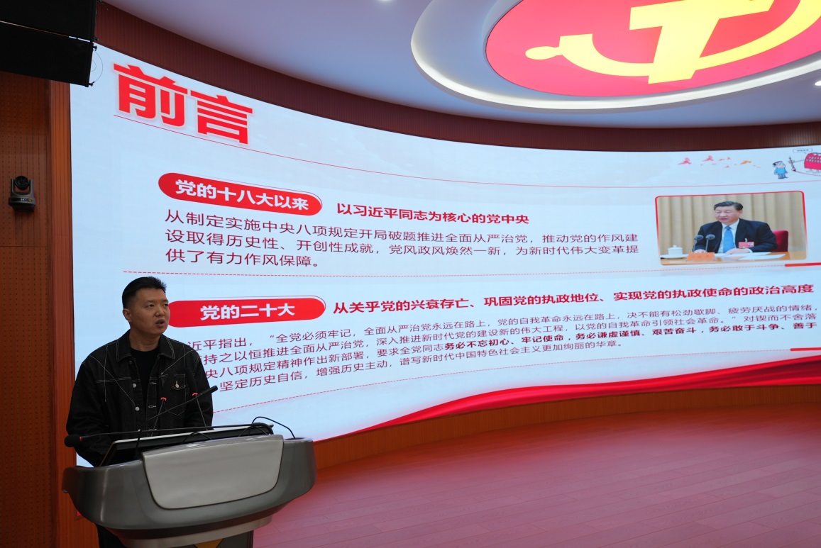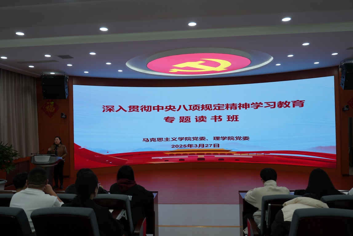 3月27日下午,yl23455永利集团在五楼大思政课虚拟仿真教学体验中心举办深入贯彻中央八项规定精神专题读书班。yl23455永利集团习近平新时代中国特色社会主义思想概论教研室主任韩浩磊主讲。yl23455永利集团党委书记马军主持,yl23455永利集团与理学院师生党员参加学习。